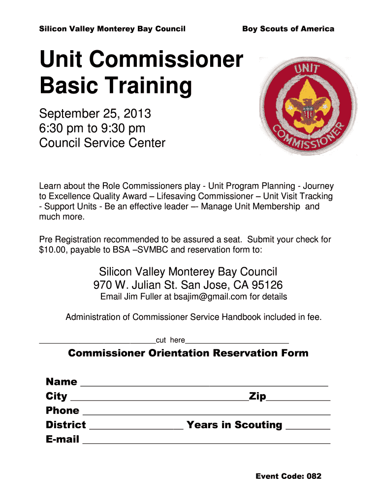 Silicon Valley Monterey Bay Council Boy Scouts of America Unit Commissioner Basic Training September 25, 2013 6:30 pm to 9:30 pm Council Service Center Learn about the Role Commissioners play Unit