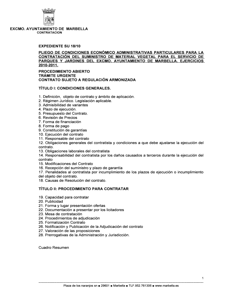 DEPENDENCE:. . . . . . . . . . . . . . . . . . . . . . . . . . . . . . . . . . NEGOTIATE:. . . . . . . . . . . . . . . . . . . . . . . . . . . . . . . . . . . . EX CMO. AYUNTAMIENTO DE MARBELLA CONTRACTION