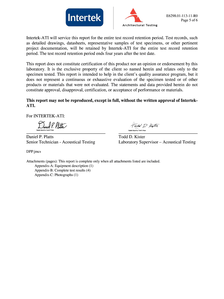 Get the free 0111311R0 ACOUSTICAL PERFORMANCE TEST REPORT ASTM E90 Rendered to: THERMATRU CORPORA...