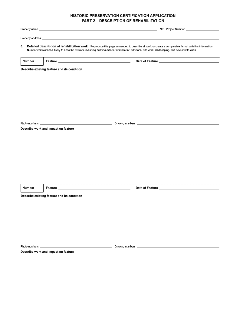 HISTORIC PRESERVATION CERTIFICATION APPLICATION PART 2 DESCRIPTION OF REHABILITATION Property name NPS Project Number Property address 5. Detailed description of rehabilitation work Reproduce this