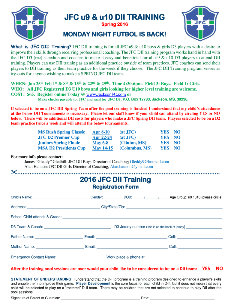 JFC u9 & u10 DID Train Spring 2016 MONDAY NIGHT FUTON IS BACK! What is JFC DID Training? JFC DID train is for all JFC u9 & u10 boys & girls D3 players with a desire to improve their skills through