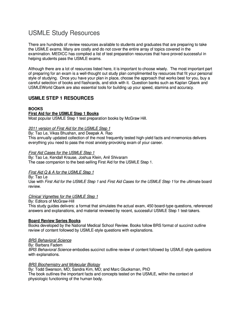 the USMLE exams. Many are costly and do not cover the entire array of topics