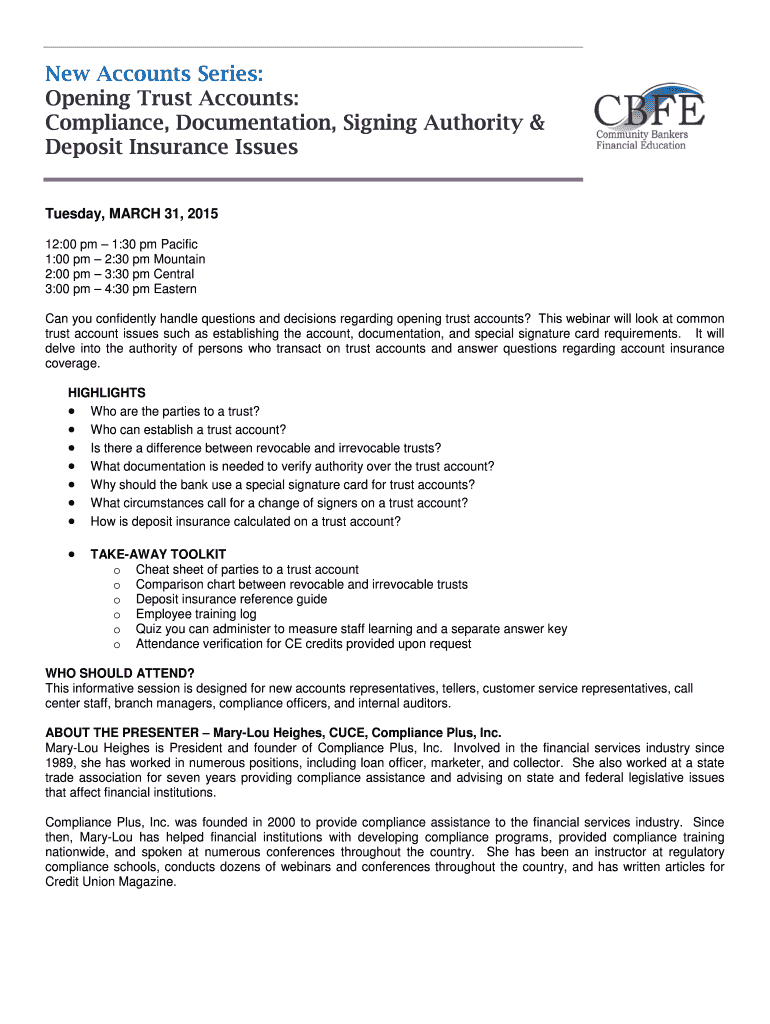 Get the free New Accounts Series: