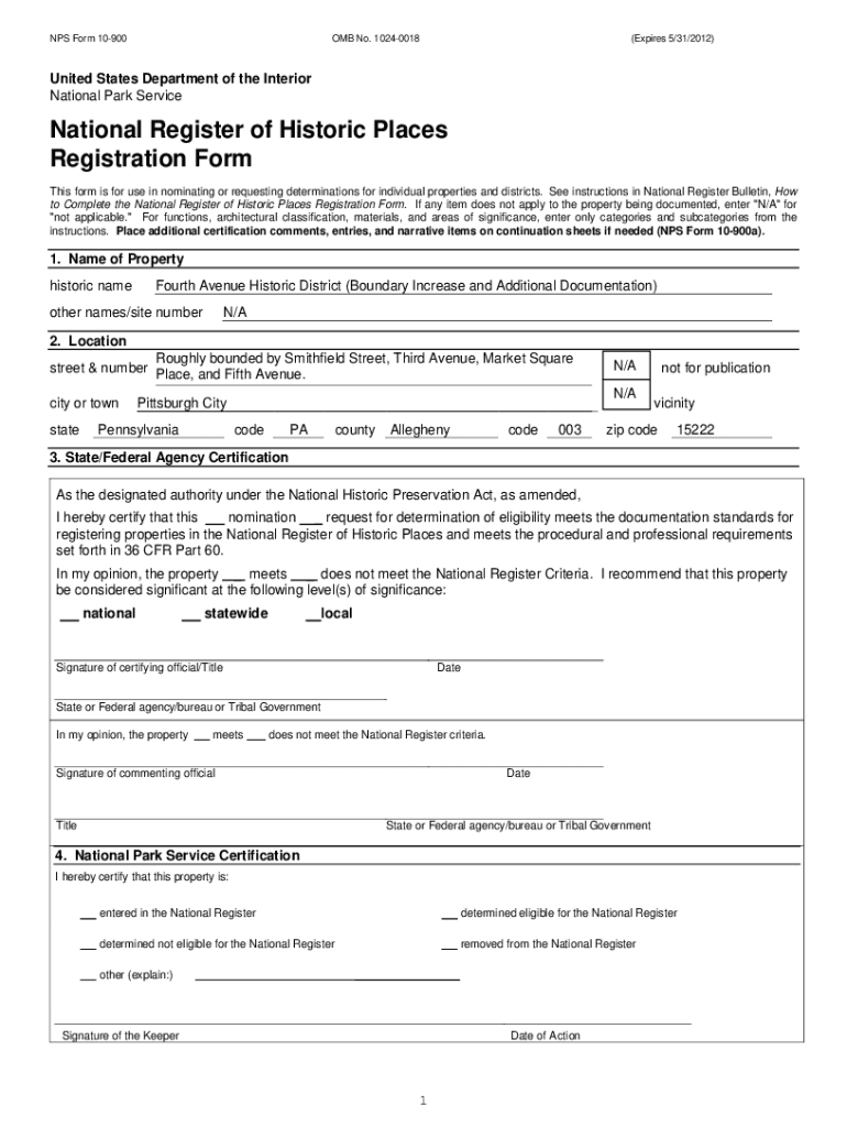 Get the free NPS Form 10-900 - apps pittsburghpa