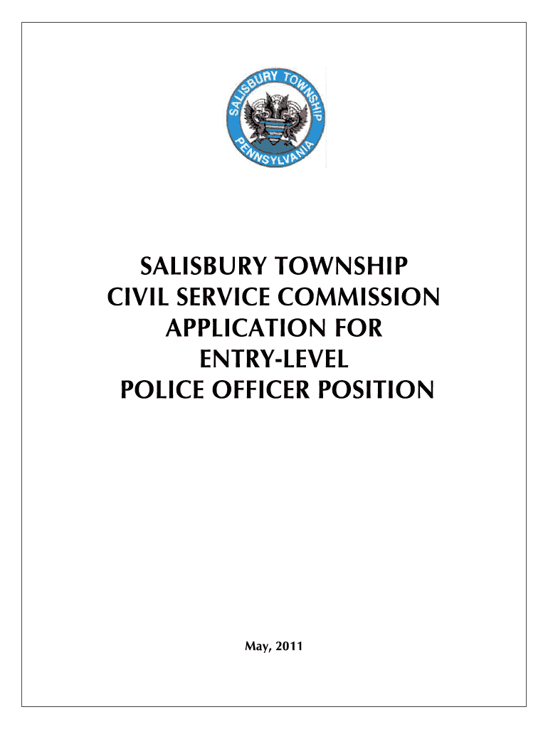This document serves as an application form for individuals seeking to apply for an entry-level police officer position with the Salisbury Township Civil Service Commission. It outlines the requirements,