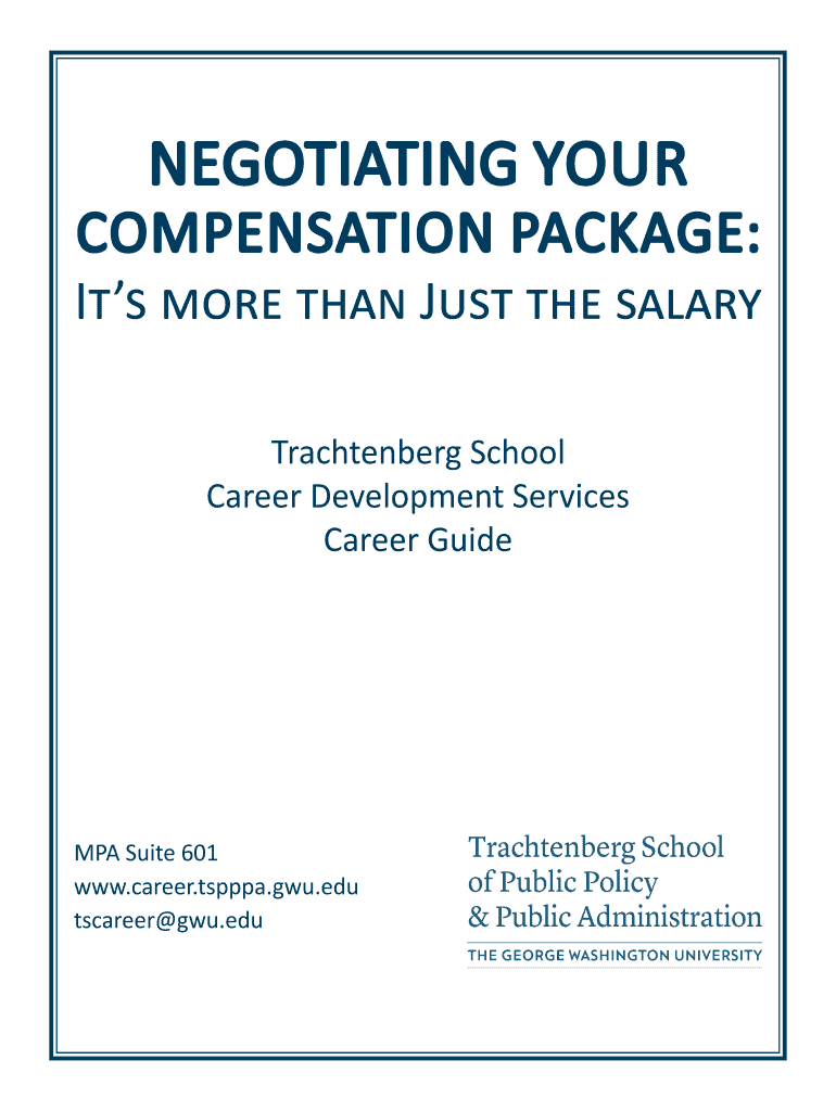 NEGOTIATING YOUR COMPENSATION PACKAGE: It's more than Just the salary Trachtenberg School Career Development Services Career Guide MPA Suite 601 www.career.tspppa.gwu.edu ts career GPU.edu NEGOTIATING