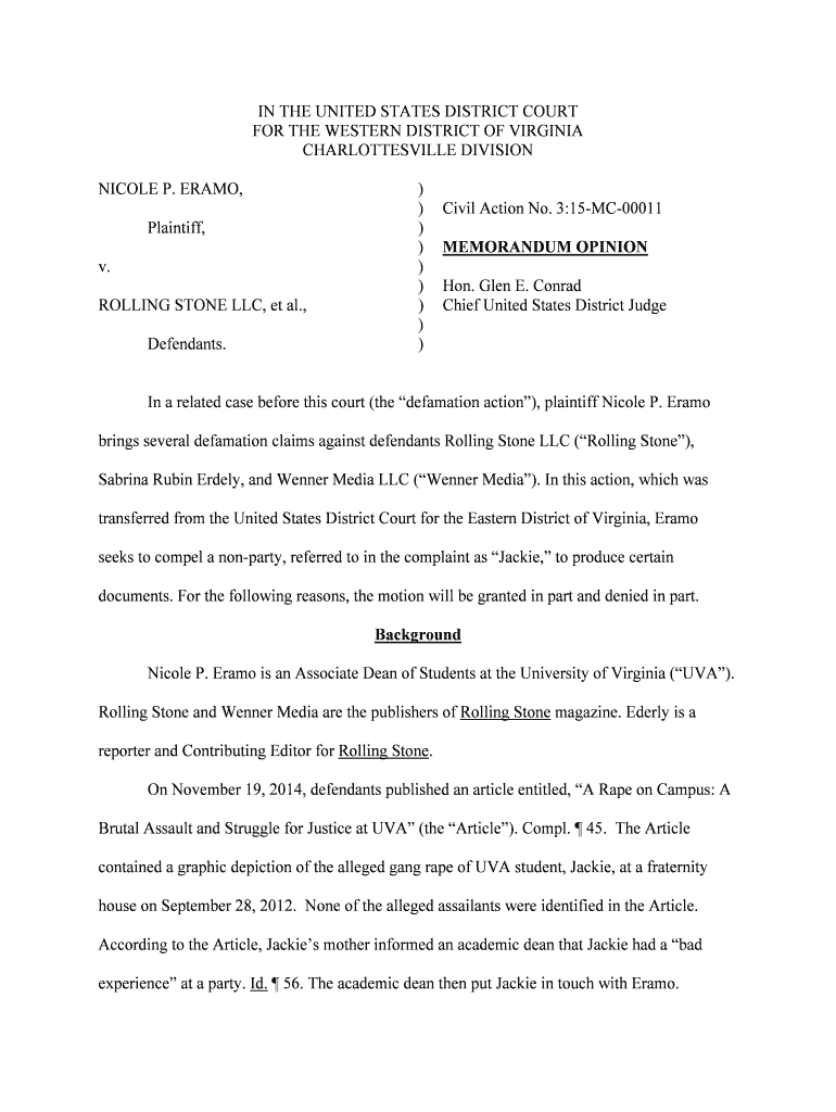 FOR THE WESTERN DISTRICT OF VIRGINIA