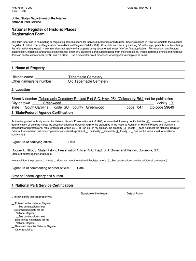 NPS Form 10-900 is the National Register of Historic Places Registration Form used to nominate properties for inclusion in the National Register.