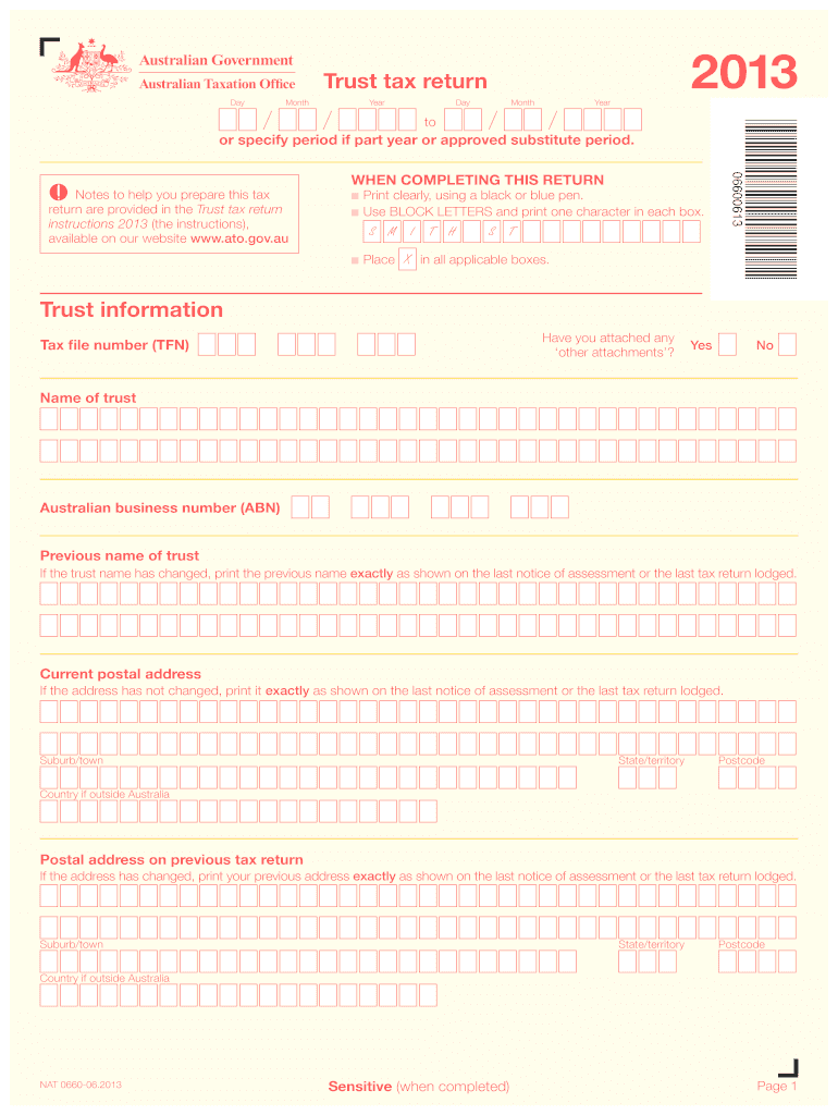 2013 Trust tax return Day Month Year Day Month Year to or specify period if part year or approved substitute period. WHEN COMPLETING THIS RETURN 06600613 Notes to help you prepare this tax return