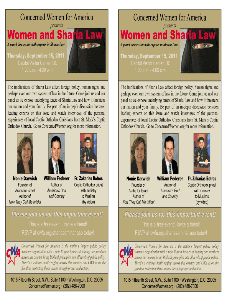 Get the free Women and Sharia Law - Concerned Women for America - cwfa