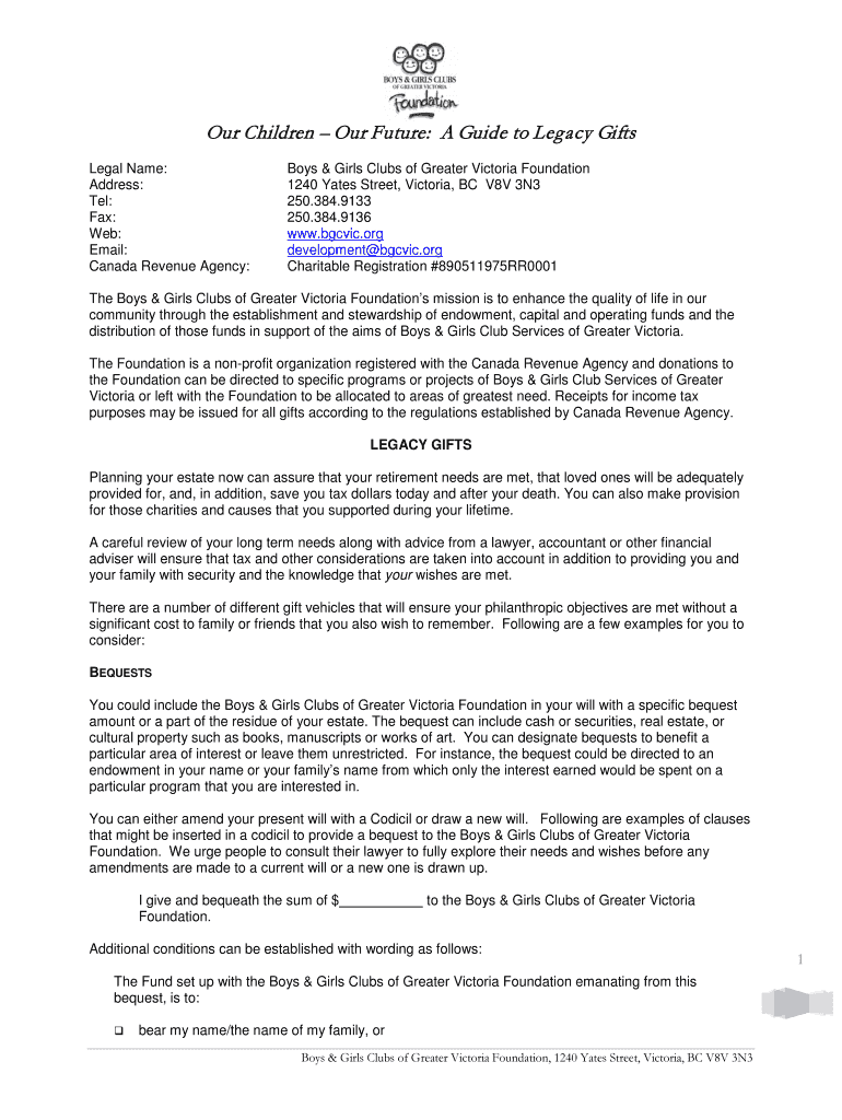 Get the free Our Children Our Future A Guide to Legacy Gifts - bgcvic