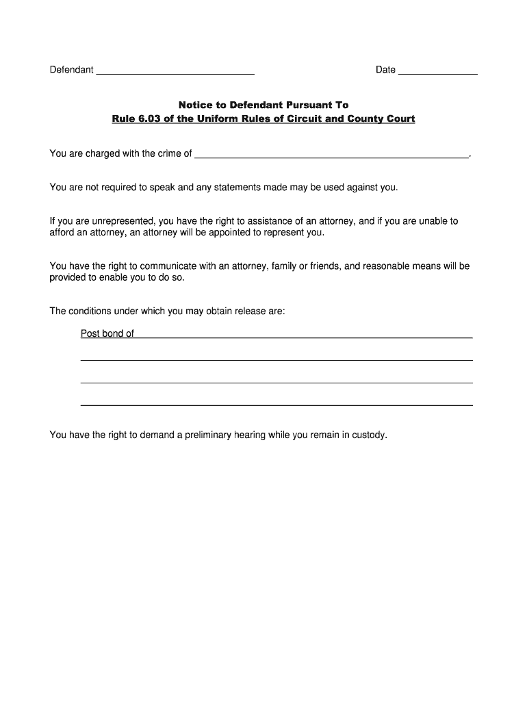 Defendant Date You are charged with the crime of. You are not required to speak and any statements made may be used against you. If you are unrepresented, you have the right to assistance of an attorney,