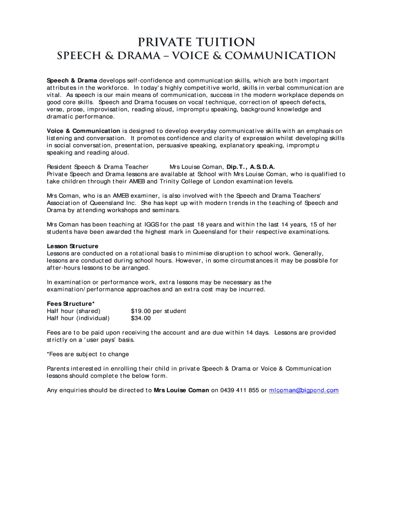 Get the free PRIVATE TUITION - iggs qld edu