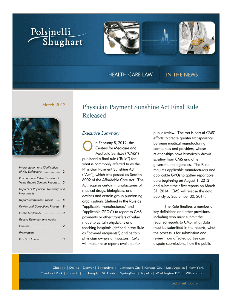 Get the free Physician Payment Sunshine Act Final Rule