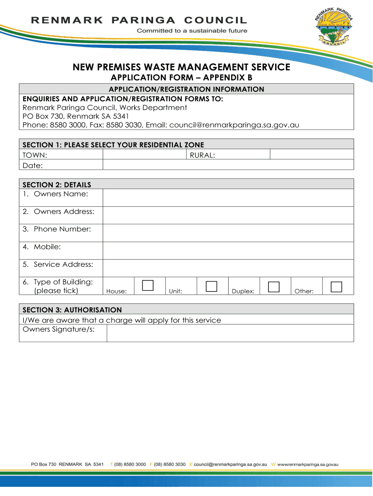 Get the free NEW PREMISES WASTE MANAGEMENT SERVICE APPLICATION FORM