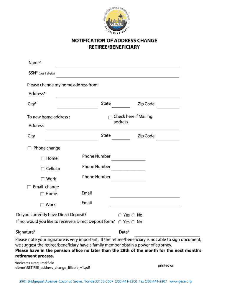 Get the free NOTIFICATION OF ADDRESS CHANGE RETIREEBENEFICIARY - geseorg