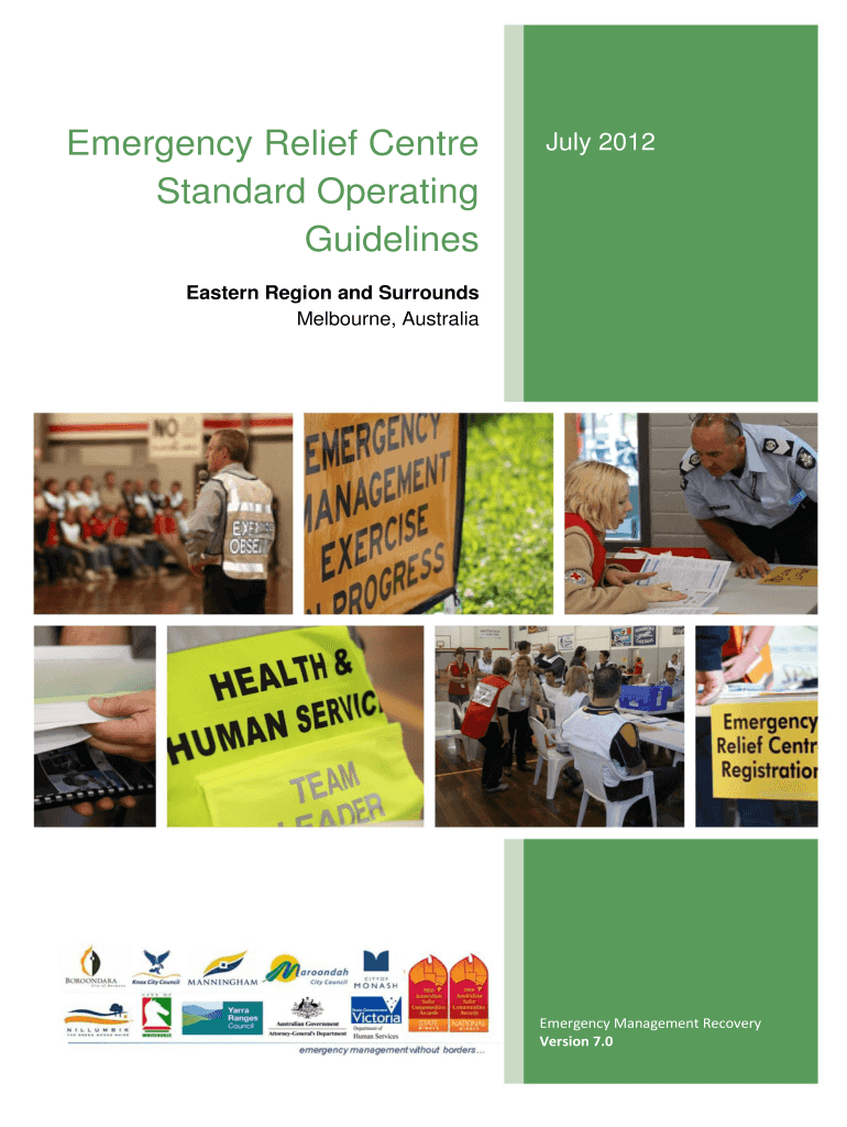 Eastern Metro Emergency Relief Center Standard Operating Guidelines July 2012 Eastern Region and Surrounds Melbourne, Australia Emergency Management Recovery Version 7.0 Preface This document was