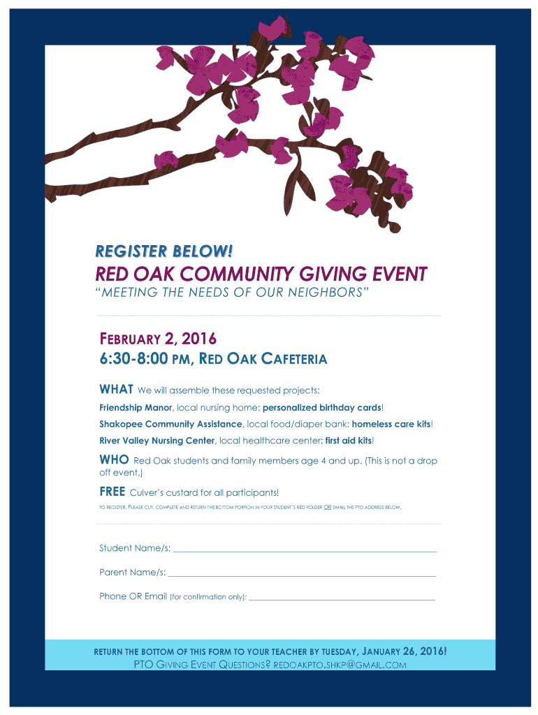 Get the free REGISTER BELOW RED OAK COMMUNITY GIVING EVENT