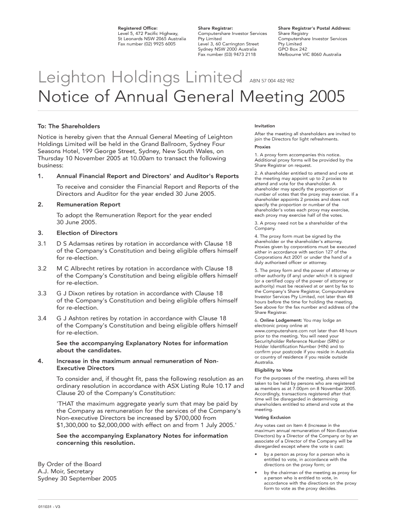 Get the free Registered Office: Level 5, 472 Pacific Highway, St Leonards NSW 2065 Australia Fax ...