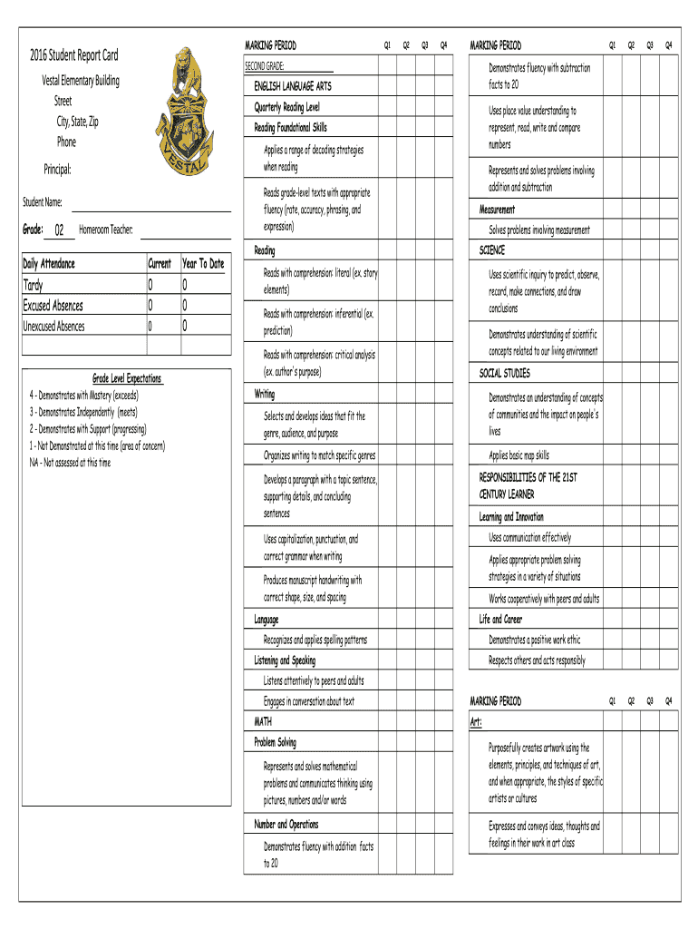 Get the free 2016 Student Report Card SECOND GRADE Demonstrates