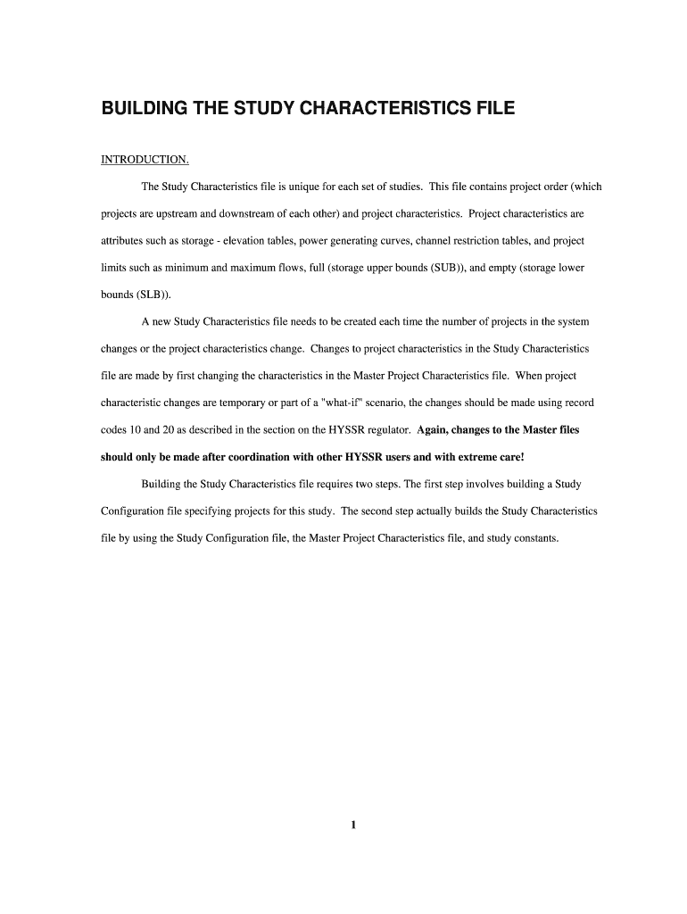 BUILDING THE STUDY CHARACTERISTICS FILE INTRODUCTION. The Study Characteristics file is unique for each set of studies. This file contains project order (which projects are upstream and downstream