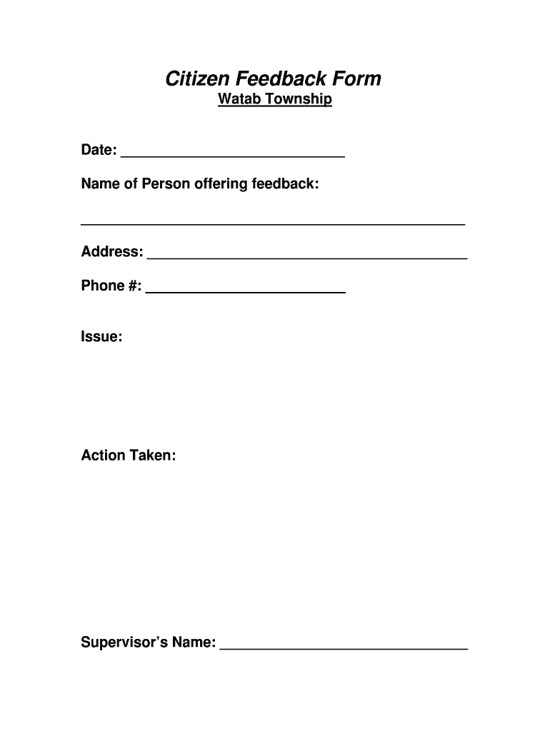 Get the free Citizen Feedback Form - bwatabtownshipcomb