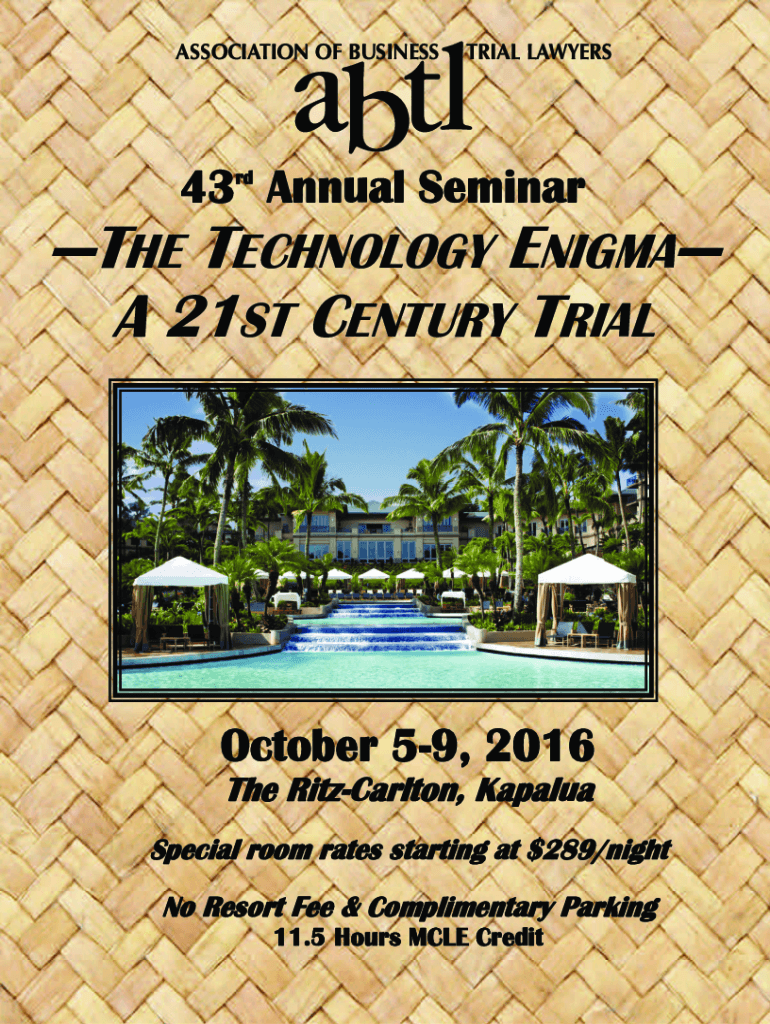 43 Annual Seminars the TECHNOLOGY ENIGMA A 21ST CENTURY TRIAL October 59, 2016 The Ritz Carlton, Kampala Special room rates starting at $289/night No Resort Fee & Complimentary Parking 11.5 Hours