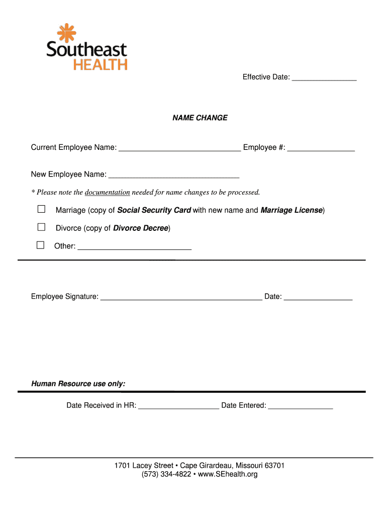 Get the free NAME CHANGE - Southeast Missouri Hospital - sehealth