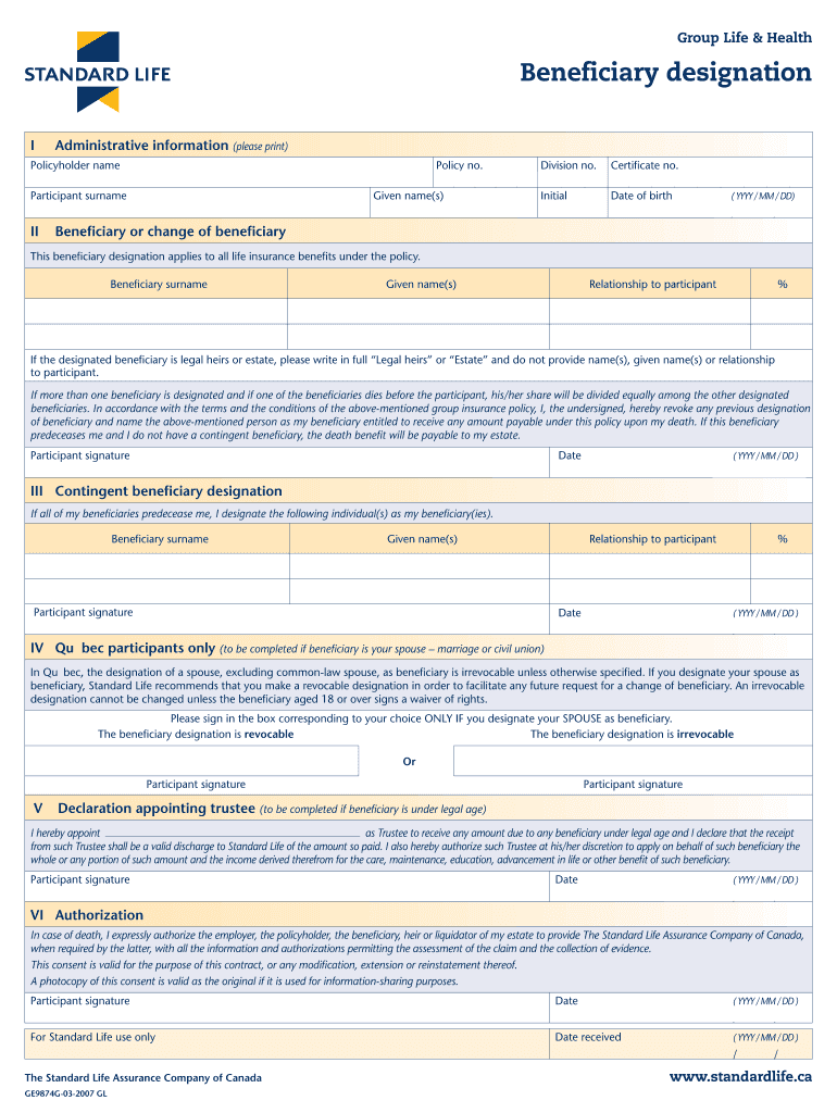 Get, Create, Make and Sign beneficiary designation ge9874