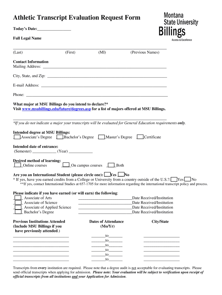 Get the free Athletic Transcript Evaluation Request Form