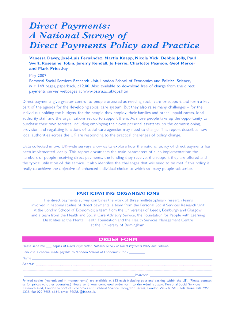 Get the free Order Form - Direct Payments A National Survey of Direct