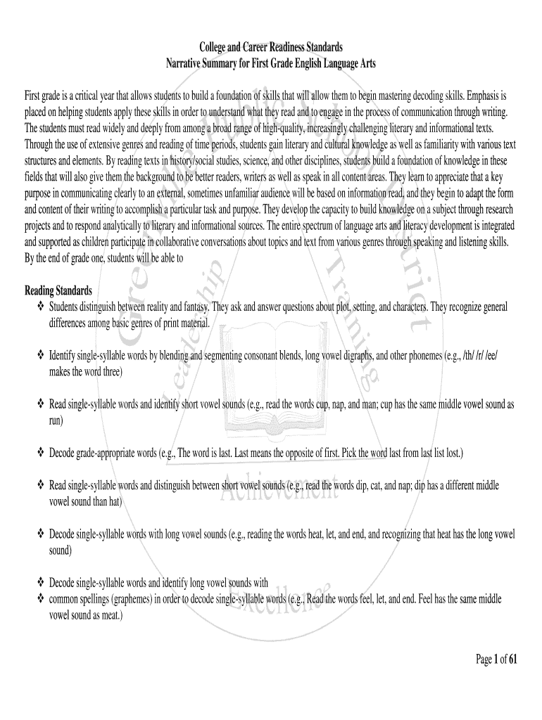 Narrative Summary for First Grade English Language Arts