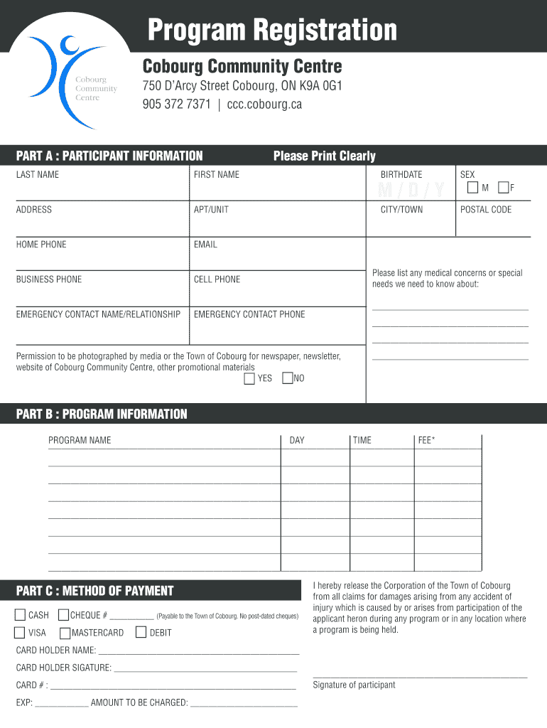 Program Registration - Cobourg is not the form you're looking for?Search for another form here.