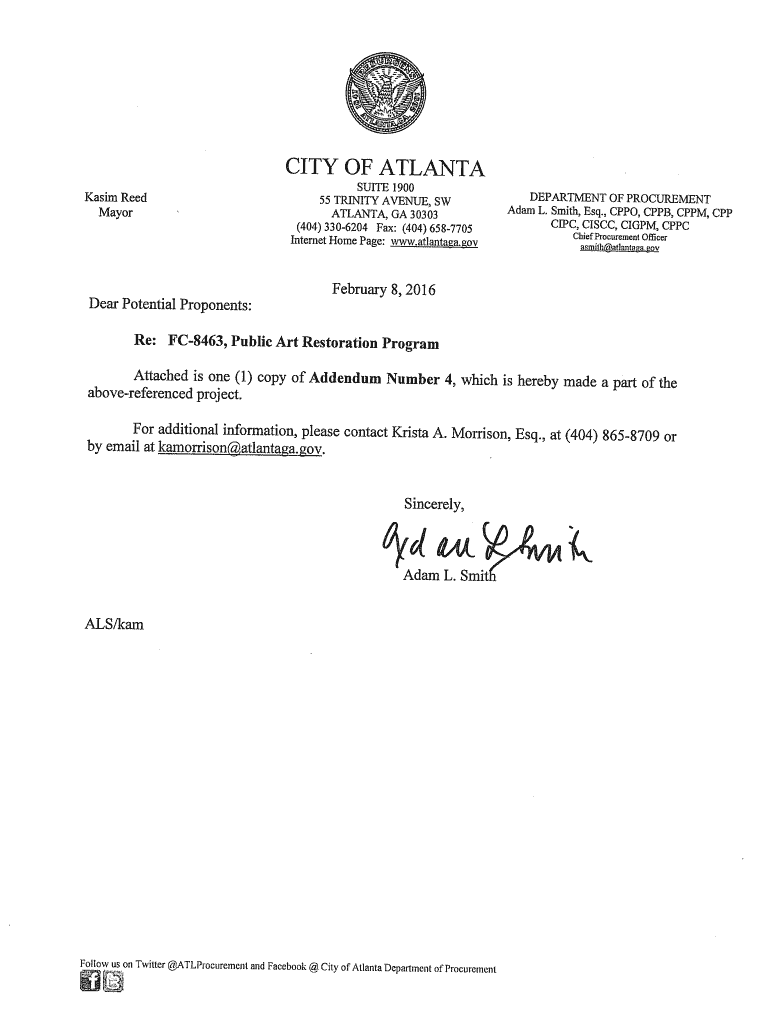 FC8463, Public Art Restoration Program Addendum No. 4 February 8, 2016-Page 2 ADDENDUM NO. 4 This Addendum No. 4 forms a part of the Request for Proposals and modifies the original solicitation package