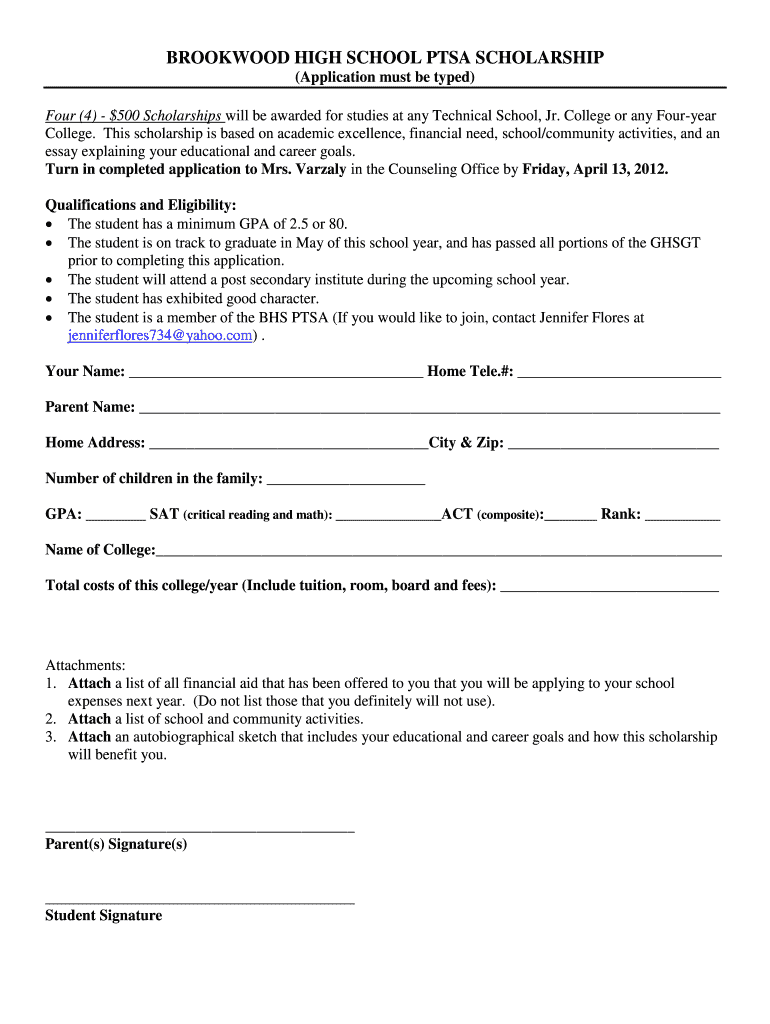Get the free BROOKWOOD HIGH SCHOOL PTSA SCHOLARSHIP