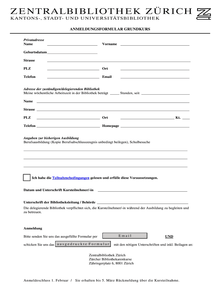 Get the free Adresse der zustndigendelegierenden Bibliothek - zb uzh