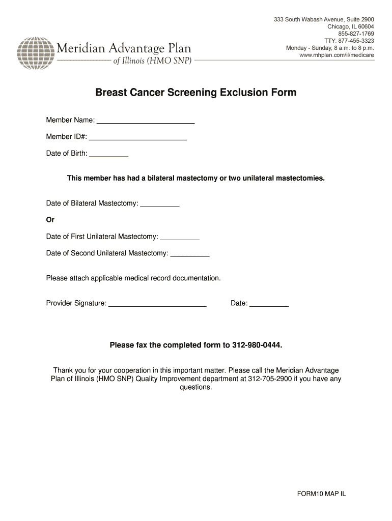 Breast Cancer Screening Exclusion Form Member Name: Member ID#: Date of Birth: This member has had a bilateral mastectomy or two unilateral mastectomies. Date of Bilateral Mastectomy: Or Date of First