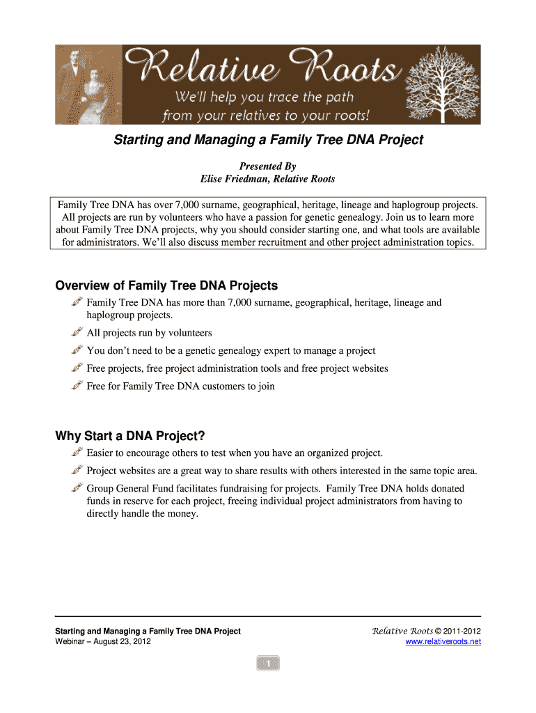 Family Tree DNA has over 7,000 surnames, geographical, heritage, lineage and haplogroup projects.
