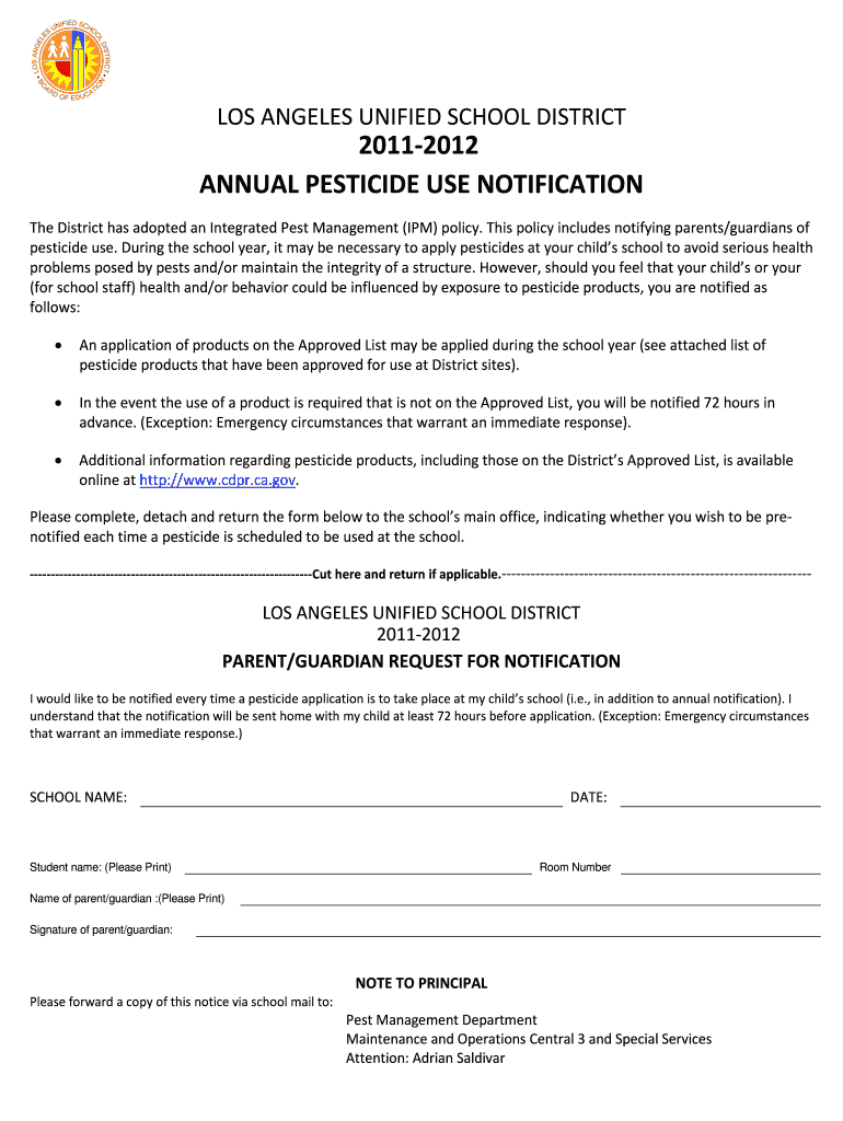 Get the free ANNUAL PESTICIDE USE NOTIFICATION 2011-b2012b - notebook lausd