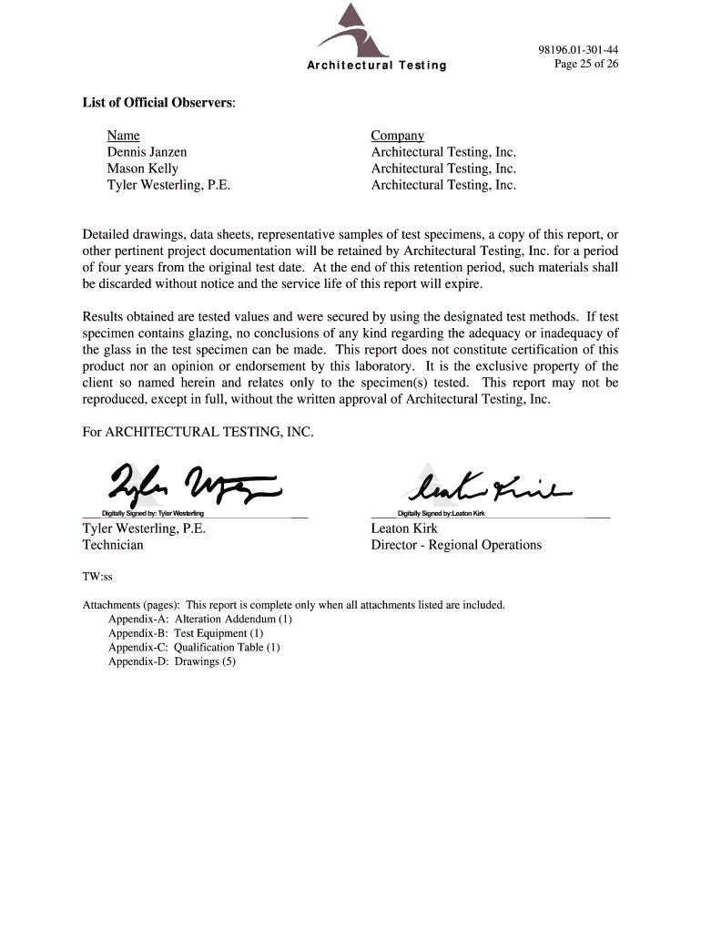 Information such as test results, material specifications, and performance characteristics must be reported on architectural testing - bristolite.