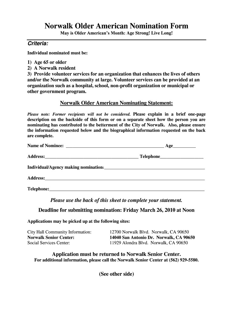 How to fill out norwalk older american nomination