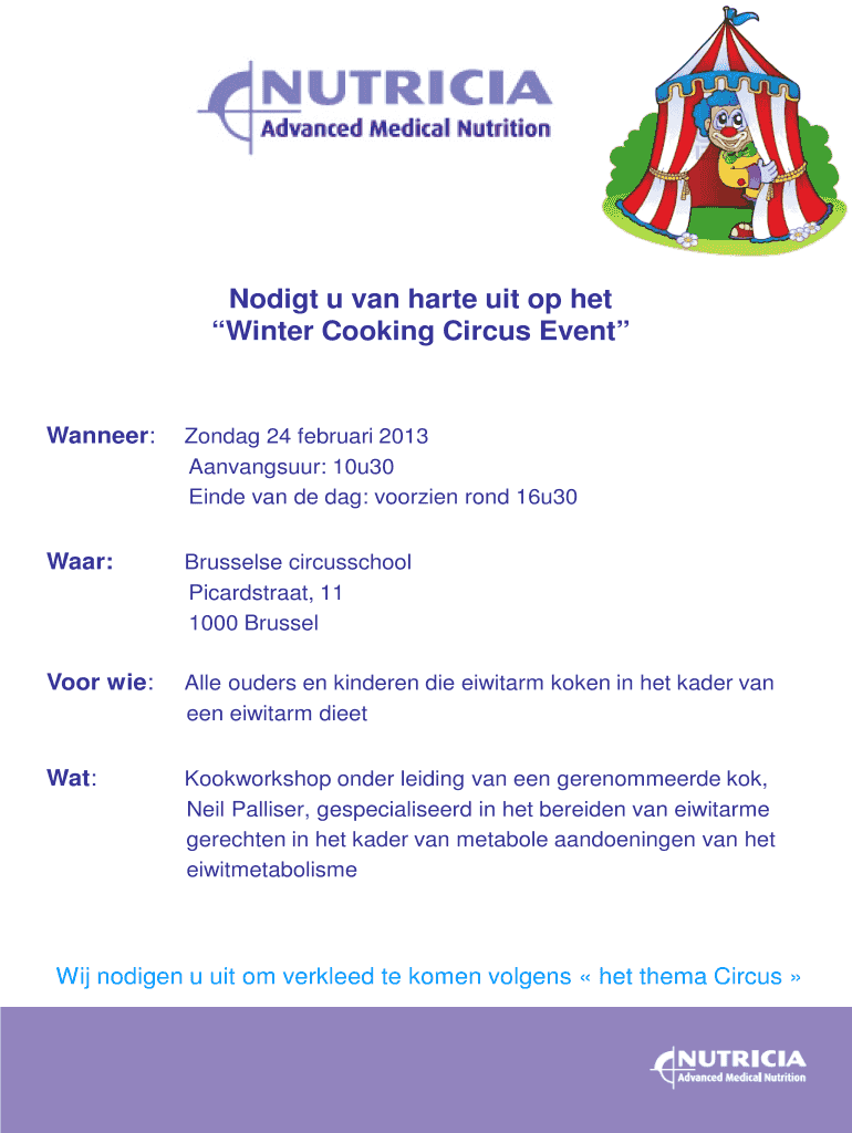 Nudist u van Harte UIT op he Winter Cooking Circus Event Wanner: Monday 24 February 2013 Aanvangsuur: 10u30 EIDE van DE dag: doormen road 16u30 War: Brussels circus school Picardstraat, 11 1000 Brussels
