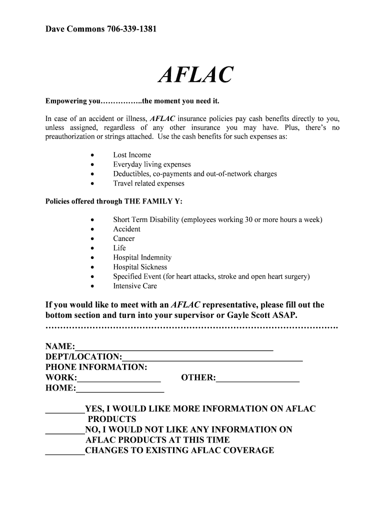 Get the free AFLAC emp interest form - the Family Y - thefamilyy