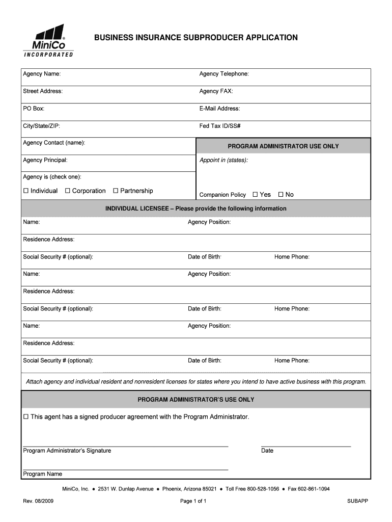 How to fill out business insurance subproducer application