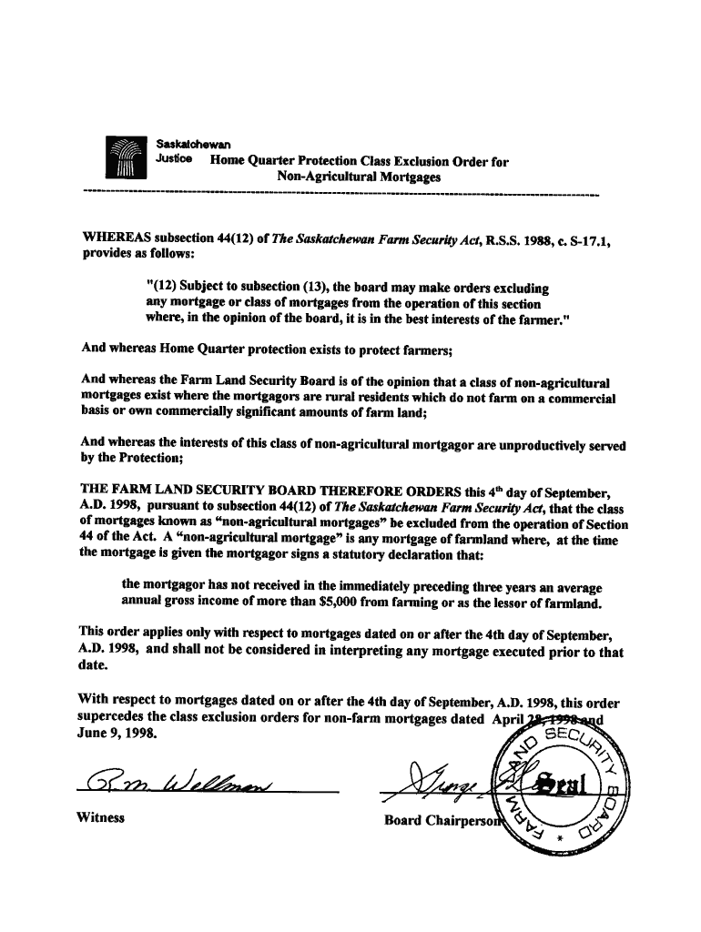Get the free NON-AGRICULTURAL MORTGAGE - farmland gov sk