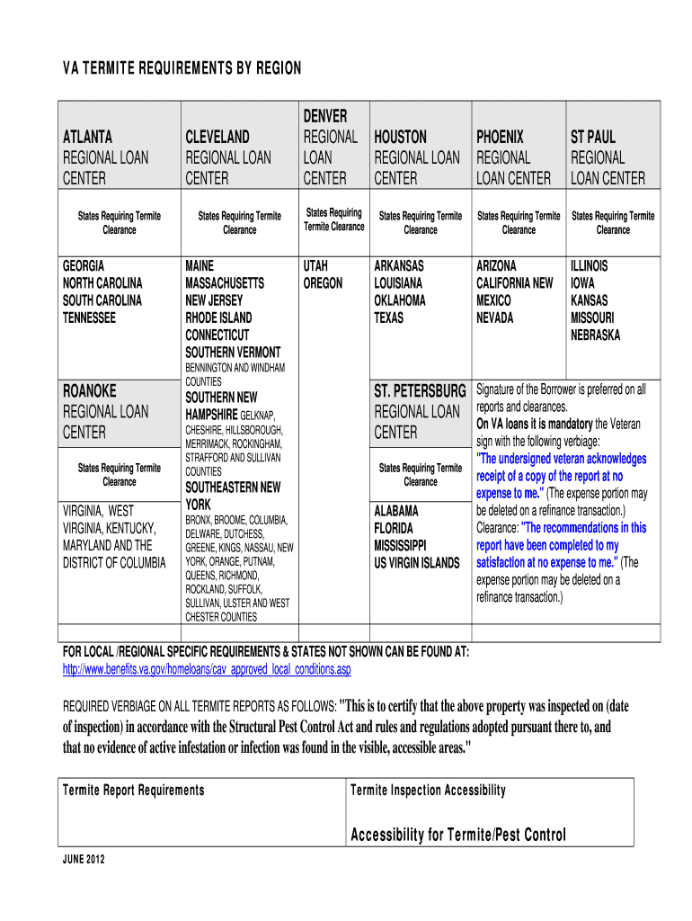 Get the free VA TERMITE REQUIREMENTS BY REGION