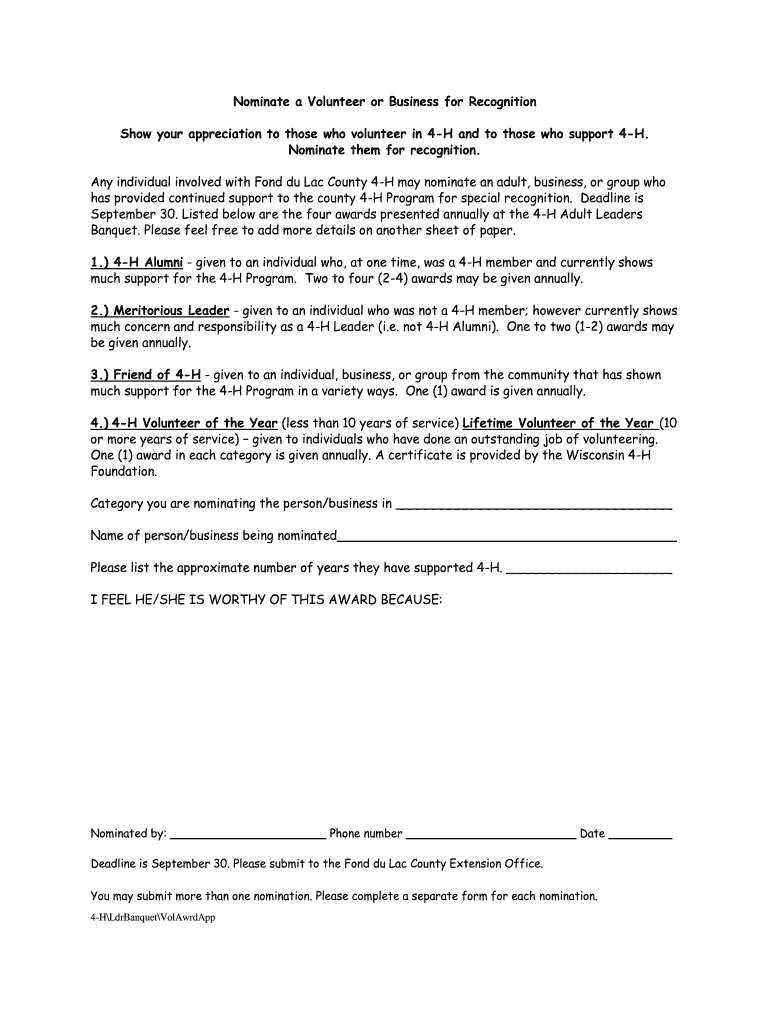 Get the free Nominate a Volunteer or Business for Recognition Nominate - fonddulac uwex