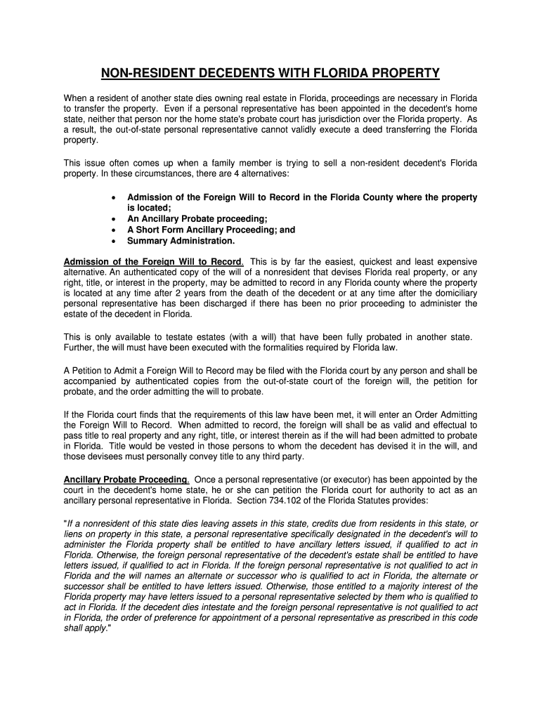 Get the free NON-RESIDENT DECEDENTS WITH FLORIDA PROPERTY