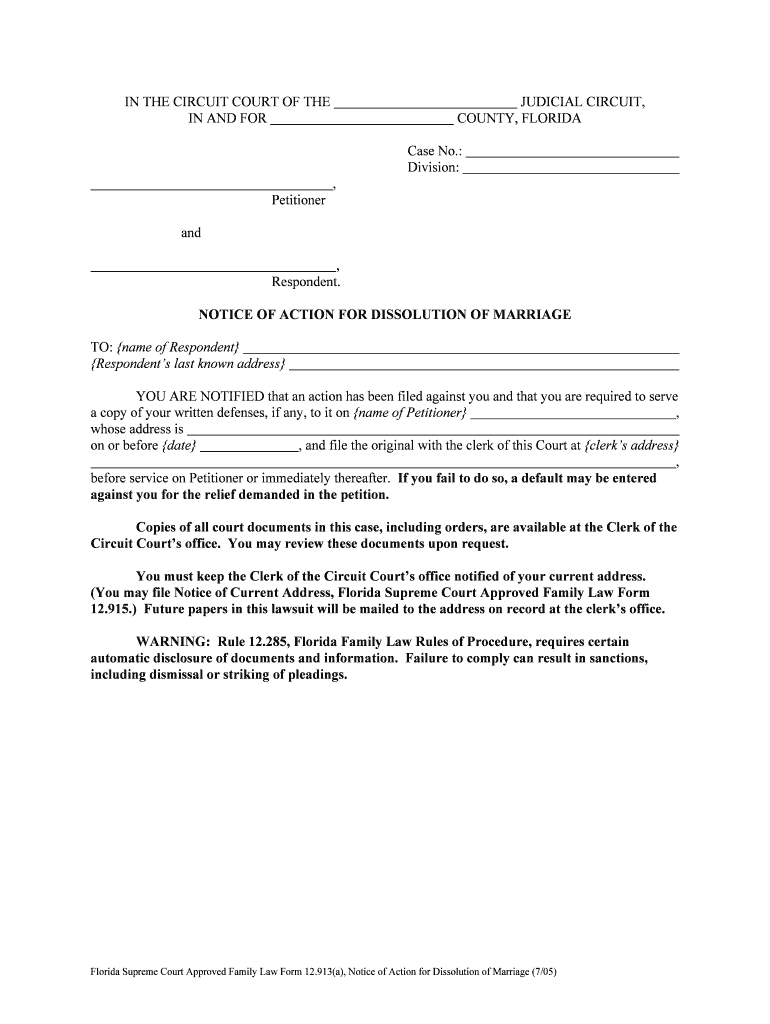 INSTRUCTIONS FOR FLORIDA SUPREME COURT APPROVED FAMILY LAW FORM 12.913(a),