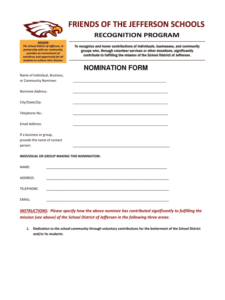 Individuals who wish to nominate someone for a specific recognition, award, or position may require the nomination form - bsdojorgb.